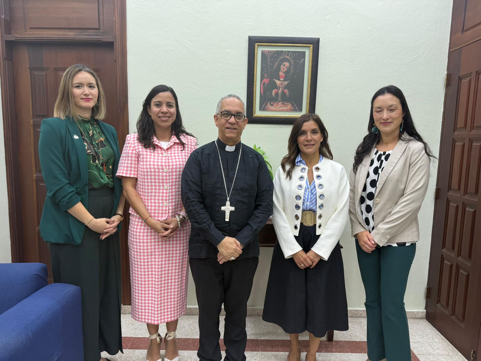 En el encuentro amistoso y fraterno, estuvieron presentes, el obispo auxiliar, monseñor Amauri Rosario; monseñor Valentín Reynoso, el sacerdote Eduardo Núñez Collado y el vicario de Catedral, Regino Collado, quienes acompañaron al líder católico.
