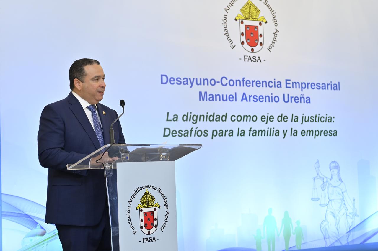 El magistrado participó como orador invitado en la duodécima edición del Desayuno-Conferencia Empresarial Manuel Arsenio Ureña, organizado por la Fundación Arquidiocesana Santiago Apóstol (FASA), actividad celebrada en el Gran Salón Samán del Hotel Santiago Curio Collection by Hilton para respaldar las labores del Arzobispado de Santiago.