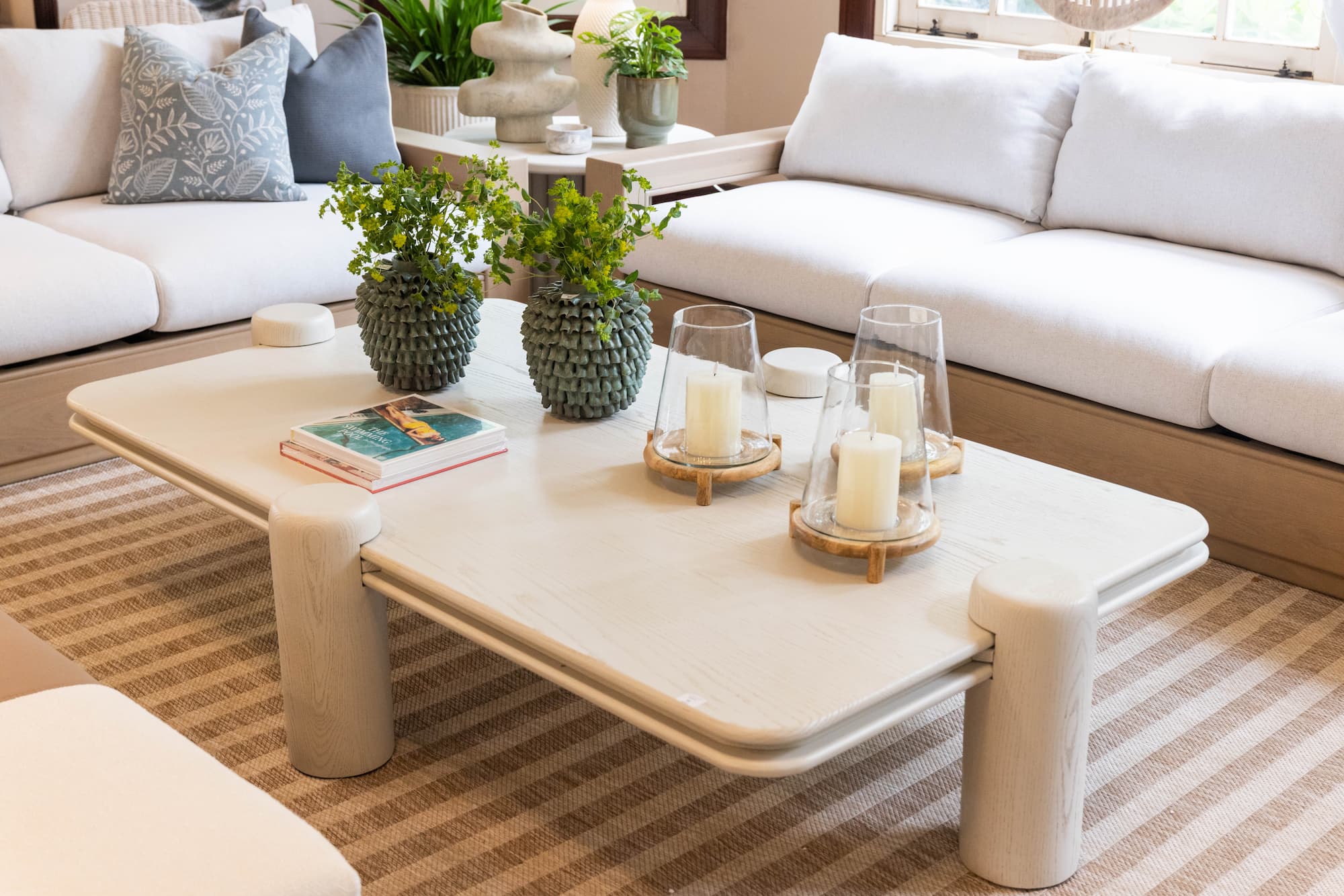 En esta propuesta destacan las siluetas suaves y envolventes, con sofás curvos, proporciones bajas y volúmenes generosos, junto a una materialidad rica en texturas como el bouclé, la madera, la piedra y los textiles táctiles. Nada responde al azar: cada mesa, cada libro, cada objeto y cada elemento natural ha sido dispuesto con intención, creando espacios que transmiten una vida en curso, con una belleza que revela una curaduría silenciosa y precisa.